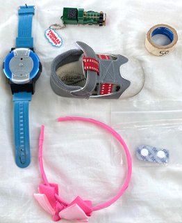 (左)子供用リストバンド (上)きかんしゃトーマスのアクセサリ (右)マスキングテープ?